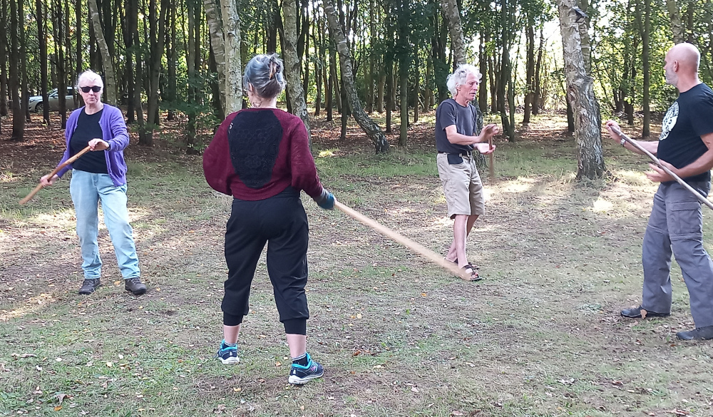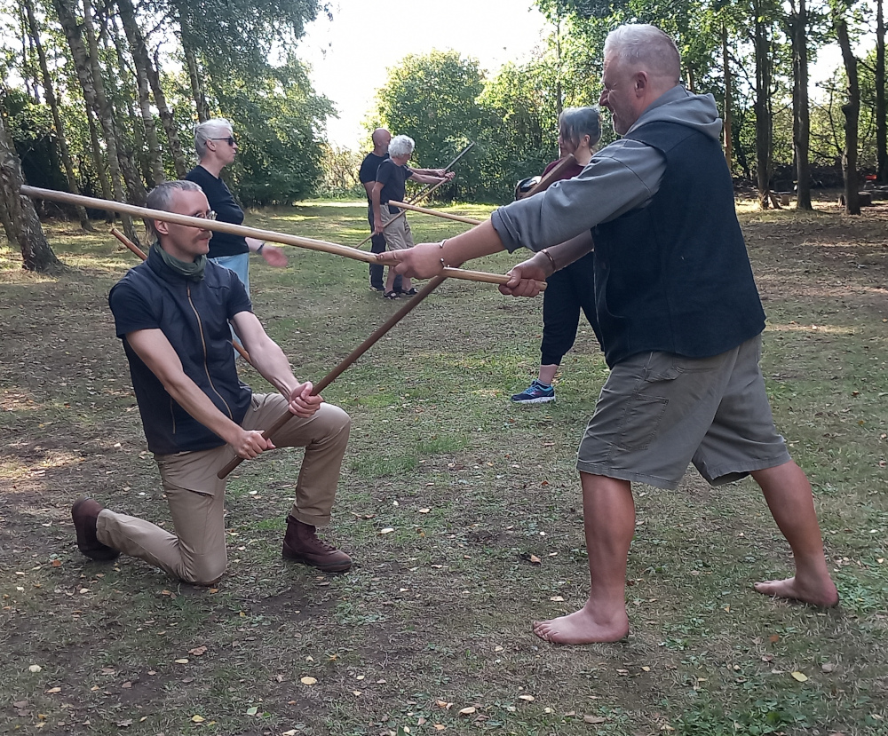 The 2025 Stavcamp went very well. 8 people attended with Graham Butcher instructing. The weather was good and we started each day with staff exercises and a version of the stances. On Friday the Trel version, on Saturday, the Karl Galdre, and on Sunday the Jarl Galdre version. During the day we spent a couple of sessions working on martial training beginning with 5 principles staff drills. We also looked at close quarter self–defence, five principles knife defence, and training with the cudgel/walking stick.