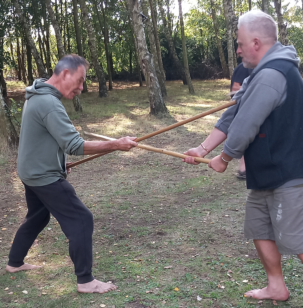 The 2025 Stavcamp went very well. 8 people attended with Graham Butcher instructing. The weather was good and we started each day with staff exercises and a version of the stances. On Friday the Trel version, on Saturday, the Karl Galdre, and on Sunday the Jarl Galdre version. During the day we spent a couple of sessions working on martial training beginning with 5 principles staff drills. We also looked at close quarter self–defence, five principles knife defence, and training with the cudgel/walking stick.